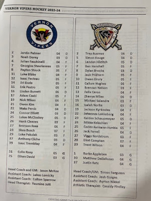 I was at tonight's Vernon Vipers-West Kelowna Warriors game as the Warriors defeated the Vipers 4-1 in front of 1,672 fans at Kal Tire Place.